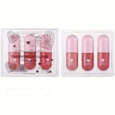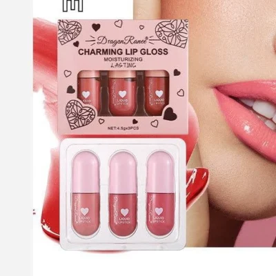 پک ۳ عددی رژ لب مایع براق شایندار دراگون رانی مدل CHARMING LIP GLOSS